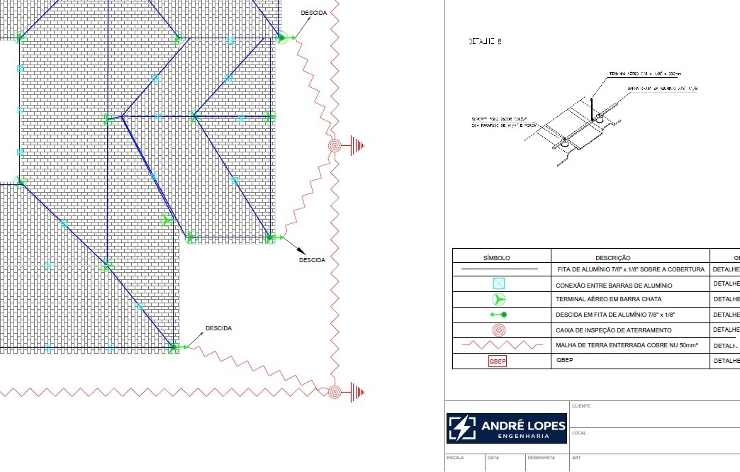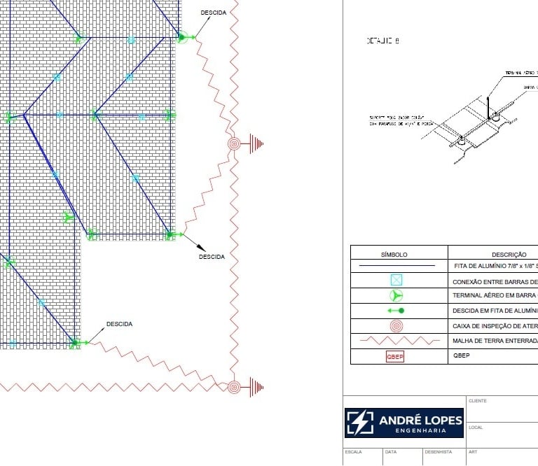 ✓ Projeto completo com captores, descidas, malha de aterramento e DPS